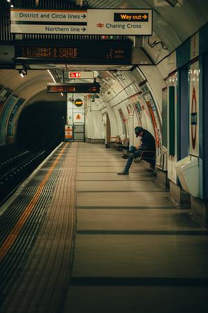 Caught in a moment of solitude on London's famous underground. Shot on location, 2024