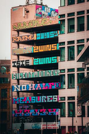 A once brooding concrete hulk now splashed with color and life. Shot in Shoreditch, March 2024.