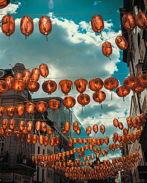 Lanterns rustle in the fall breeze in Chinatown. Available on high lustre paper, canvas and framed.