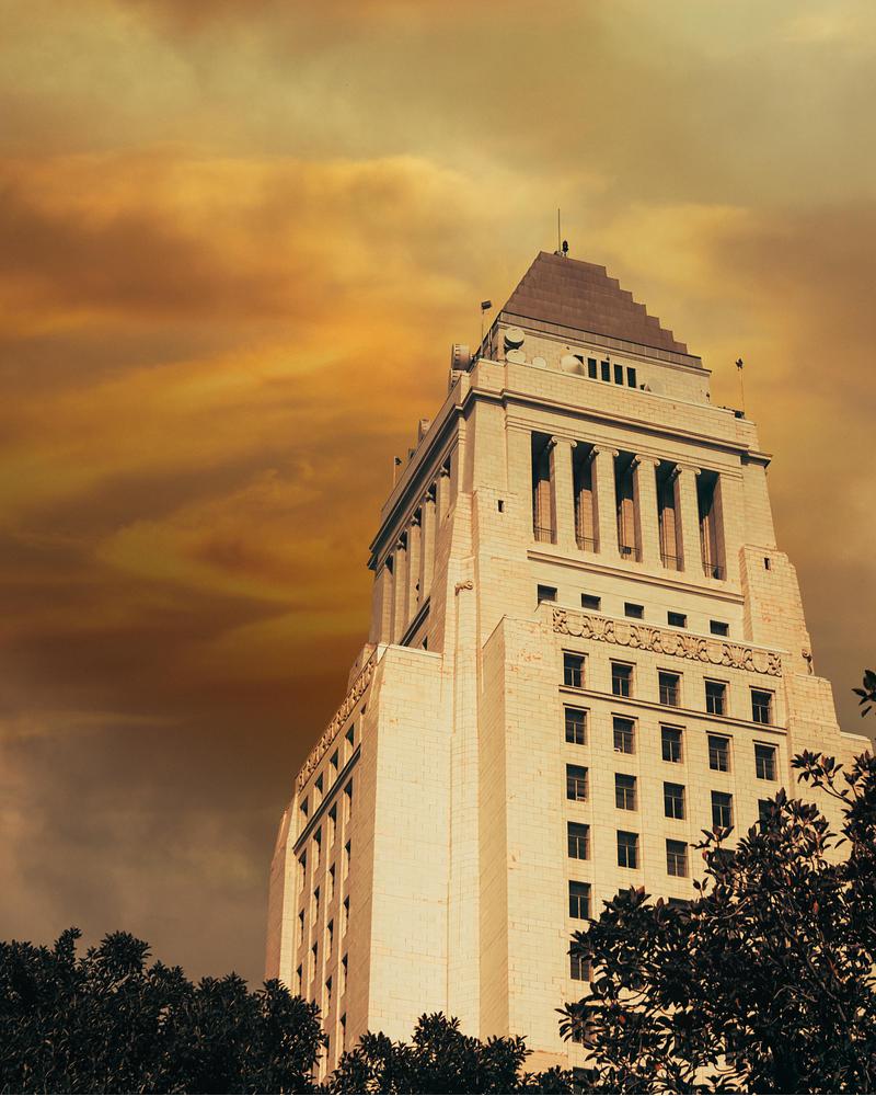 The iconic LA City Hall under a gathering California storm, available on high lustre paper, canvas and framed.