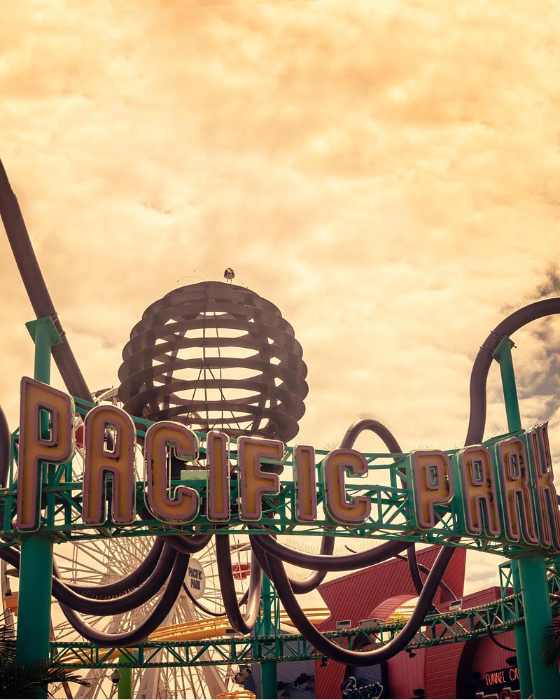 Under the Santa Monica Sun Pacific Park awaits the sunset. Available on high lustre paper, canvas and framed.
